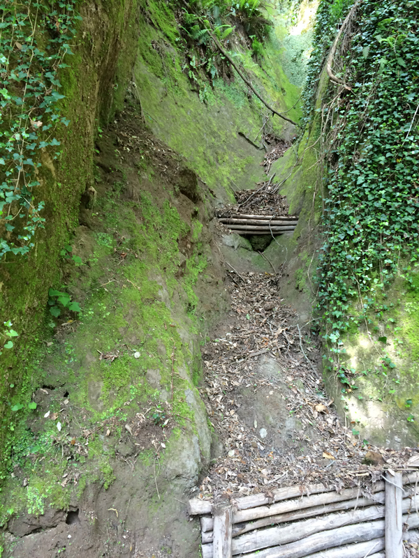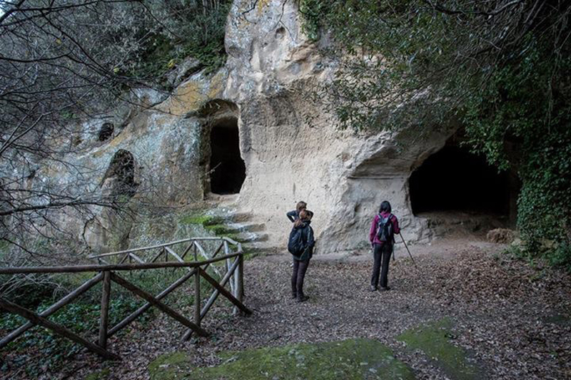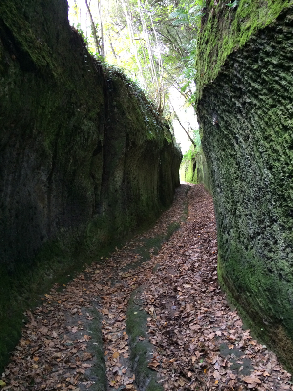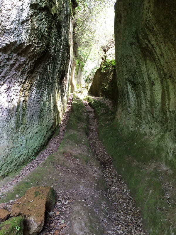 Le Vie Cave, denominate anche Cavoni, costituiscono una suggestiva rete viaria di epoca etrusca che collega vari insediamenti e necropoli nell'area compresa tra Sovana, Sorano e Pitigliano, sviluppandosi prevalentemente in trincea tra ripide pareti rocciose di tufo, a tratti alte oltre i venti metri: queste caratteristiche costituivano anche un efficace sistema di difesa contro possibili invasori. In epoca romana, le Vie Cave entrarono a far parte di un sistema viario che si connetteva al tronco principale della via Clodia, antica strada di collegamento tra Roma e Saturnia, attraverso la città di Tuscania, che si diramava dalla via Cassia in territorio laziale. Intorno a Sorano le Vie Cave hanno inizio uscendo dalla Porta dei Merli e scendendo nel fondovalle del torrente Lente. Si ipotizza che le Vie Cave fossero percorsi sacri, forse realizzati per difesa, comunque percorsi estremamente interessanti perchè grazie alla particolare escursione termica si è naturalmente realizzato nel corso degli anni un prezioso orto botanico naturale. Per alcuni studiosi sono nate originariamente in un contesto di culto della terra, dove in primo piano vi era l'utilizzo dell'acqua, per poi divenire dei percorsi sacri e funerari, utilizzati per delle speciali processioni e per altre cerimonie connesse al culto dell'oltretomba. A Sovana si trova la Via Cava San Sebastiano, una delle più grandi tagliate della zona che si sviluppa in altezza. Scavati nel tufo compaiono spesso i tagli per lo scolo delle acque, realizzati lungo le pareti. Non mancano tabernacoli medievali con immagini sacre, tra cui la Madonna, che servivano a proteggere i viandanti dal diavolo che, secondo la tradizione popolare, spesso vagava in queste zone. Nella vicina Via Cava del Covone una croce uncinata: una svastica, il sole ruotante, il simbolo della vita. Accanto la scritta vertne che rimanda al Dio Etrusco Veltha.