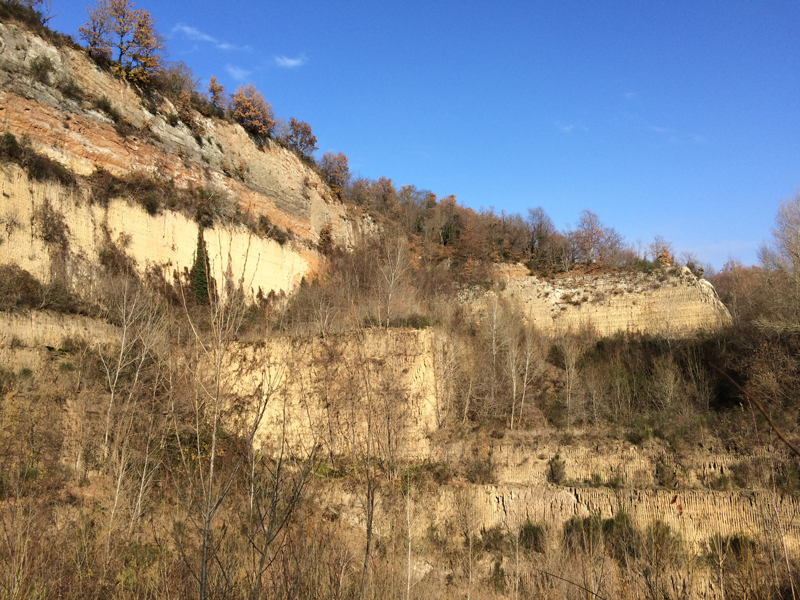 Proseguendo oltre comincio a sentirmi "lontano da casa" e andare avanti non mi da più le sensazioni positive che fino ad ora avevo avuto... ma ecco che trovo le tracce di una strada che sembra risalire verso la "civiltà", pensando che si tratti della provvidenza la intrapendo percorrendola fino in cima, la strada termina in un'altra più grande e solo a questo punto mi rendo conto di essere arrivato esattamente dove volevo, alla vecchia cava di San Valentino.